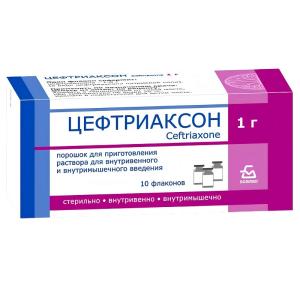 ЦЕФТРИАКСОН (пор. д/приг.р-ра д/внутривенного и внутримышечного введения 1 г фл. №10)