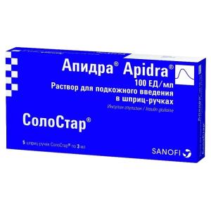 АПИДРА (раствор для подкожного введения 100 ЕД/мл в картриджах 3мл в шприц-ручках СолоСтар №5)