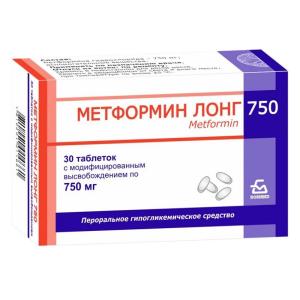 МЕТФОРМИН ЛОНГ 750 (табл.с модиф.высв. 750 мг №10х3)