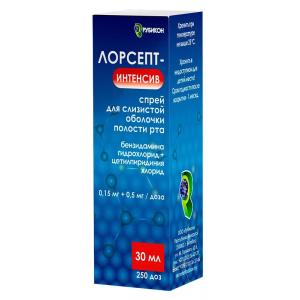 ЛОРСЕПТ-ИНТЕНСИВ (спрей для слизистой оболочки полости рта (1,5мг/5,0мг)/1мл фл. 30 мл №1)