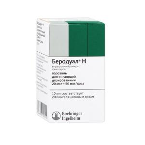 БЕРОДУАЛ Н (аэроз. доз. д/инг 20мкг+50мкг/доза фл. 10мл (200доз) №1)