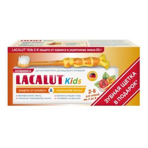 Lacalut Комплект: зуб.паста дет. Kids 2-6 защ. от кариеса и укрепл. эмали 65 г + зуб.щетка дет. Kids 2-6