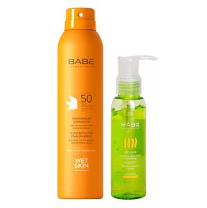 LABORATORIOS BABE Набор косметич. Спрей прозрач.солнцезащ..д/влажной кожи SPF50 200мл+Гель увлажн.Алоэ100% 90мл
