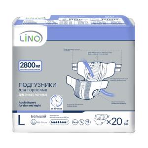 LINO Подгузники для взрослых Large №20, полная влаговпитываемость 2800 мл (день+ночь)