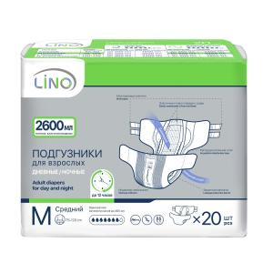 LINO Подгузники для взрослых медиум №20, полная влаговпитываемость 2600 мл (день+ ночь)