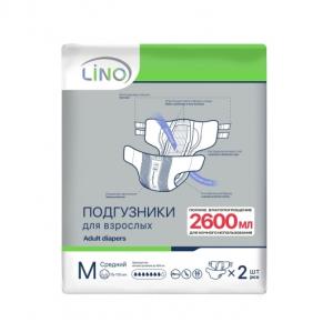 LINO Подгузники для взрослых медиум №2, полная влаговпитываемость 2600 (день+ночь)