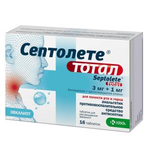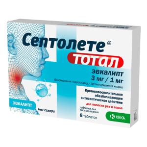СЕПТОЛЕТЕ ТОТАЛ ЭВКАЛИПТ (табл. д/рассасывания 3мг/1мг №8х1)