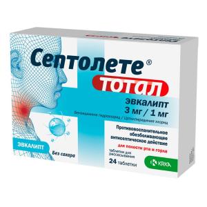 СЕПТОЛЕТЕ ТОТАЛ ЭВКАЛИПТ (табл. д/рассасывания 3мг/1мг №8х3)