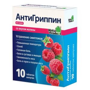 АНТИГРИППИН (таблетки шипучие со вкусом малины в пластиковом пенале №10 в упаковке №1)