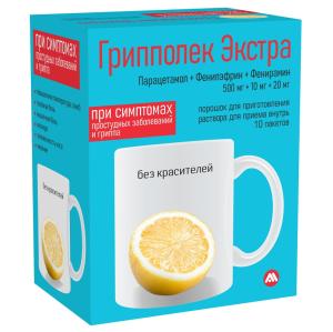 ГРИППОЛЕК ЭКСТРА (пор. д/приг. р-ра д/приема внутрь (лимон) 500мг+10мг+20мг пак. №10)