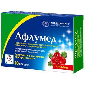 АФЛУМЕД® (пор. д/приг. р-ра д/приема внутрь (клюква) 500 мг+10 мг+20 мг+50 мг пак. №10)