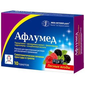 АФЛУМЕД® (пор. д/приг. р-ра д/приема внутрь (лесные ягоды) 500 мг+10 мг+20 мг+50 мг пак. №10)