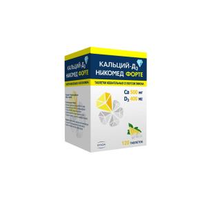 КАЛЬЦИЙ-Д3 НИКОМЕД ФОРТЕ (табл. жев. (со вкусом лимона) 500мг/400МЕ фл. №120)