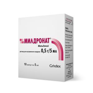 МИЛДРОНАТ (р-р д/внутривенного введения 0,5г/5мл амп. 5 мл №5х2)