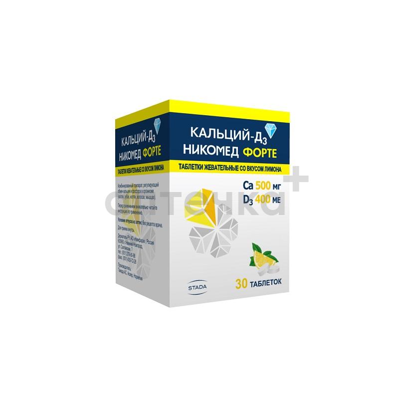 КАЛЬЦИЙ-Д3 НИКОМЕД ФОРТЕ (табл. жев. (со вкусом лимона) 500мг/400МЕ фл. №30)