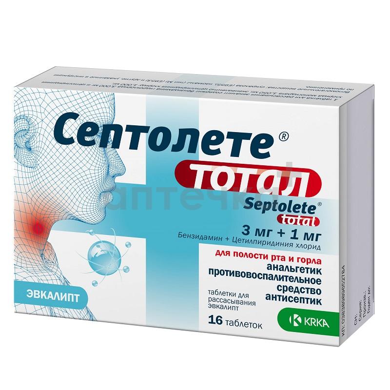 СЕПТОЛЕТЕ ТОТАЛ ЭВКАЛИПТ (табл. д/рассасывания 3мг/1мг №8х2)
