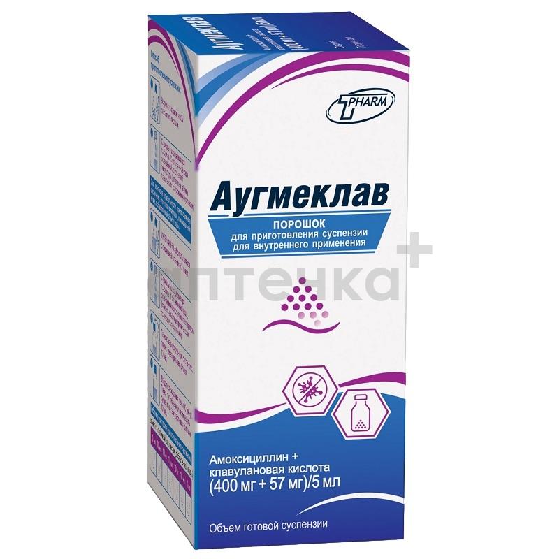 АУГМЕКЛАВ (пор. д/приг. суспензии д/внутр. прим. (400мг+57мг)/5мл фл. №1)АУГМЕКЛАВ (пор. д/приг. суспензии д/внутр. прим. (400мг+57мг)/5мл фл. №1)