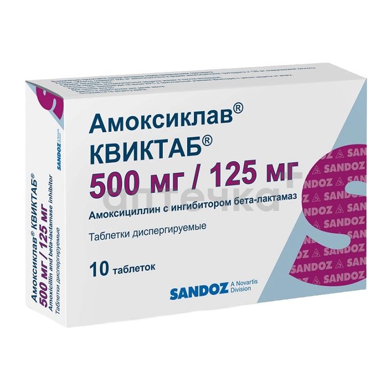 АМОКСИКЛАВ КВИКТАБ (таблетки диспергируемые 500мг/125мг №5х2)