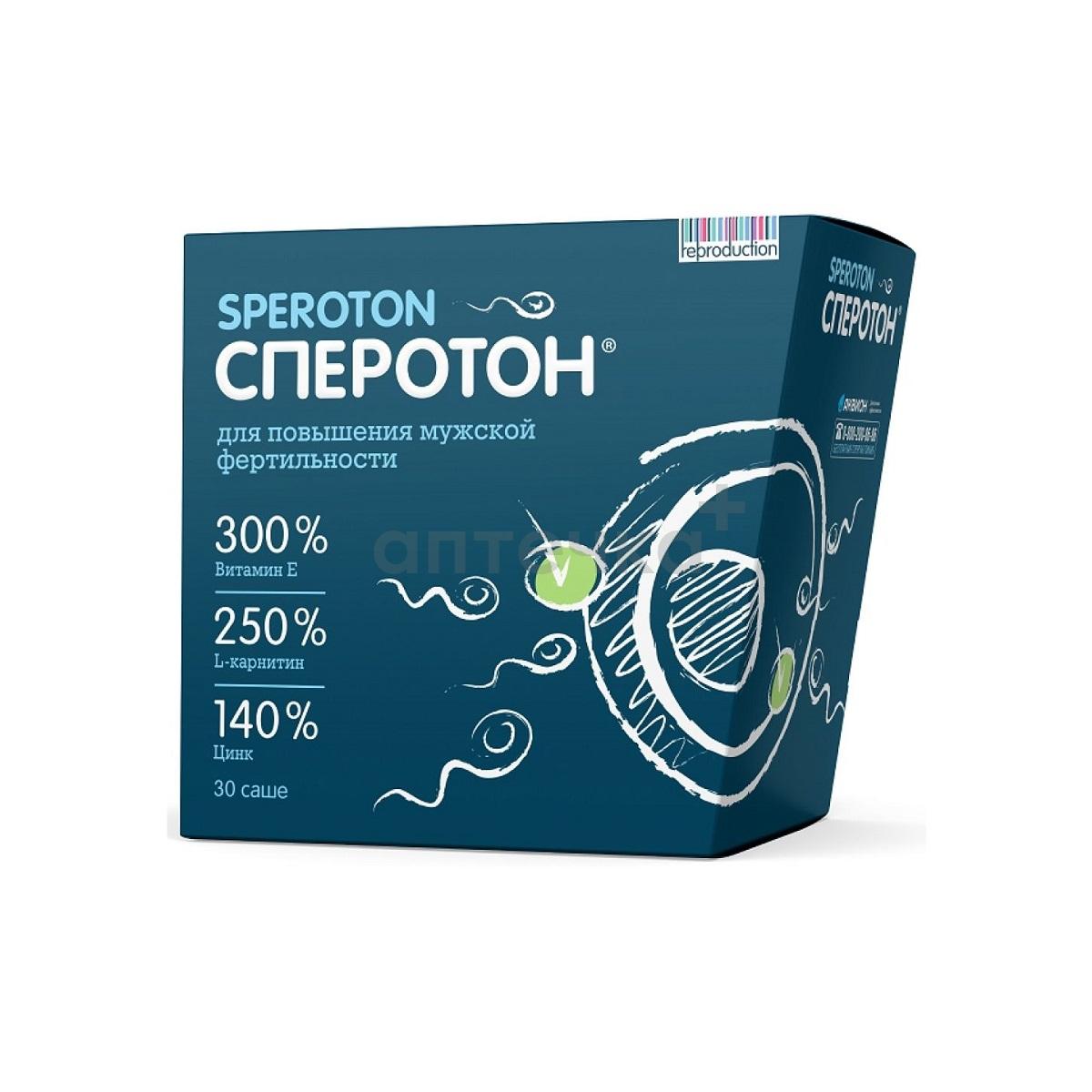Сперотон помогает повысить вероятность зачатия, так как улучшает качество спермы. Сперотон содержит L-карнитин в высокой дозировке, фолиевую кислоту, витамин Е, а также селен и цинк. Эти вещества оказывают эффективную помощь мужчинам при сниженной фертильности.