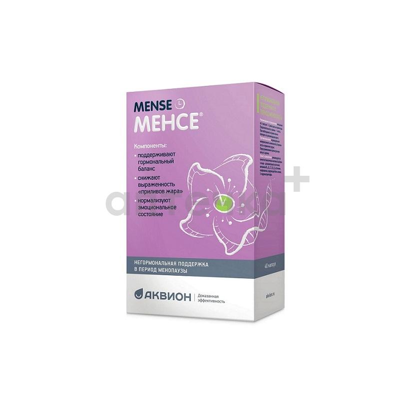 Менсе рекомендуется в качестве биологически активной добавки к пище – дополнительного источника витаминов В12, В9, С, Е, В6, В5, источника изофлавонов, содержащей бета-аланин, 5-гидрокситриптофан. Полезные вещества, входящие в состав комплекса, помогают нивелировать проявления климактерического синдрома и снизить риск развития нежелательных последствий климакса.