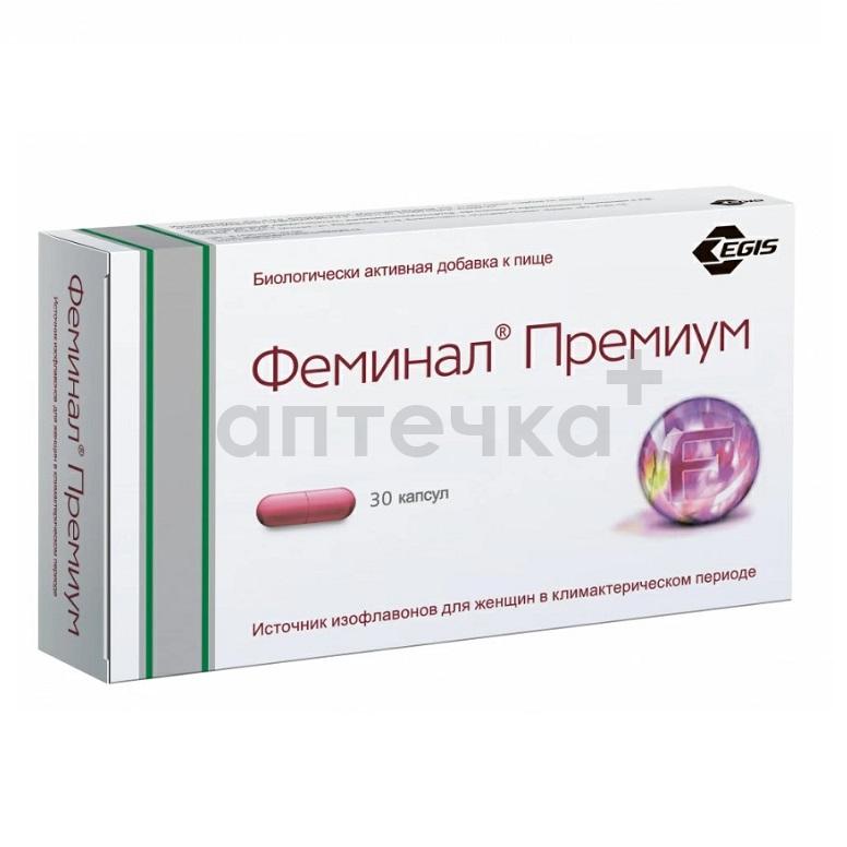 Феминал Премиум рекомендуется в качестве биологически активной добавки (БАД) к пище для женщин в климактерическом периоде - источника изофлавонов. Каждая капсула содержит около 40 мг изофлавонов, полученных из красного клевера.