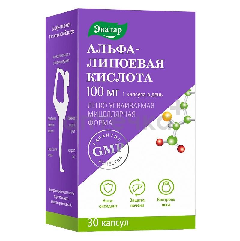 Альфа-липоевая кислота 100 мг (БАД) (капсулы мягкие желатиновые №30)
