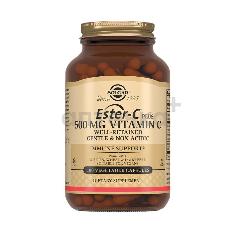 Капсулы «Эстер-С плюс Витамин С 500 мг» рекомендуются в качестве биологически активной добавки к пище - дополнительного источника витамина С, источника флавоноидов (рутина), имеют натуральный состав и содержат цитрусовые флавоноиды лимона, апельсина, грейпфрута, лайма, мандарина, плоды ацеролы, плоды шиповника. Эстер-С - запатентованная формула витамина С. По сравнению с обычным витамином С Эстер-С: усваивается в организме быстрее сохраняет активность в организме дольше и не раздражает слизистую желудка. Витамин С играет важную роль в синтезе нейромедиаторов – норадреналина серотонина, а также желчных кислот из холестерина. Он является антиоксидантом, участвует в синтезе коллагена, карнитина, гормонов и аминокислот, необходим для здоровья костей и кровеносных сосудов. Поддерживает функцию иммунной системы и облегчает всасывание железа.