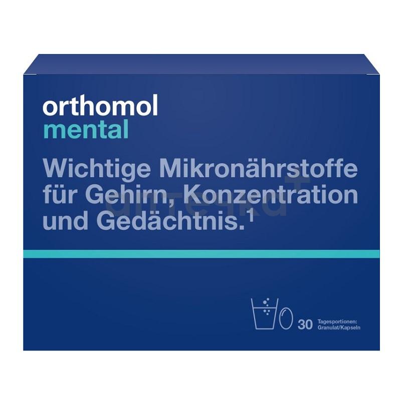 Ортомоль Ментал рекомендуется в качестве биологически активной добавки к пище - дополнительного источника витаминов А, Д3, Е, С, В1, В2, В6, В12, никотиамида, пантотеновой кислоты, фолиевой кислоты и биотина, магния, цинка, селена, источника каротиноидов, коэнзима Q10, L-карнитина, докозогексаеновой кислоты, флавоноидов и полифенольных соединений, стимулирует активность мозга, улучшает память и концентрацию и позволяет сохранять высокую умственную работоспособность в любом возрасте. Входящие в состав комплекса жирные кислоты поддерживают нормальное состояние клеток мозга (нейронов), а витамины и микроэлементы обеспечивают беспрепятственный обмен сигналами между ними. Комплекс рекомендован всем, кто сталкивается с высокими умственными нагрузками, включая школьников и студентов во время подготовки и сдачи экзаменов. Пожилым людям следует употреблять витаминный комплекс для укрепления памяти и профилактики старческого слабоумия.