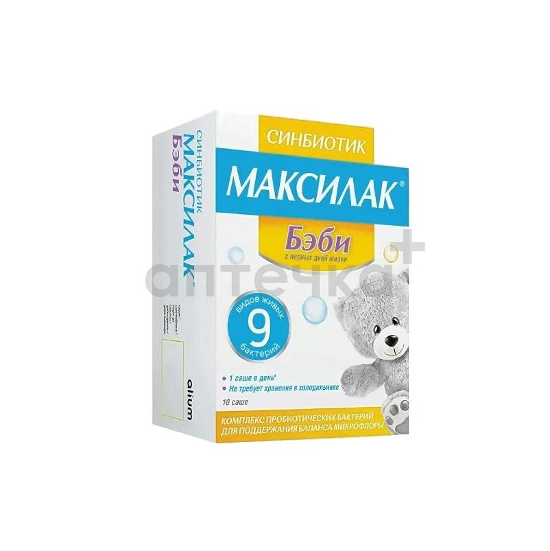Синбиотик Максилак Бэби — комплекс содержащий 9 культур полезных бактерий в необходимой для кишечника ребенка концентрации — 1 миллиард (1x10 9) КОЕ, который рекомендуется в качестве источника пробитических микроорганизмов для нормализации микрофлоры кишечника в процессе и/или после приема препаратов, которые могут вызвать изменения качественного и/или количественного состава микробиоценоза ЖКТ; при функциональных расстройствах кишечника, диарее (поносе), нарушении пищеварения, запоре, метеоризме (вздутии живота), тошноте, отрыжке, рвоте, боли и дискомфорте в животе и пр.; в период сезонных всплесков инфекционных заболеваний (для поддержки иммунитета); для профилактики кишечных расстройств при смене климата, места пребывания. Максилак Бэби специально создан для детей и выпускается с помощью инновационной технологии производства. Данная технология защищает микрогранулы от действия факторов внутренней и внешней среды, благодаря чему большая часть пробиотических бактерий попадает в кишечник, а не растворяется в желудке, что положительно сказывается на восстановлении микрофлоры ЖКТ, так как концентрация колоний микроорганизмов возрастает от желудка к толстой кишке. Не содержит казеина и консервантов, поэтому он безопасен для детей с аллергией на продукты этой группы. Может применяться детьми с непереносимостью лактозы.