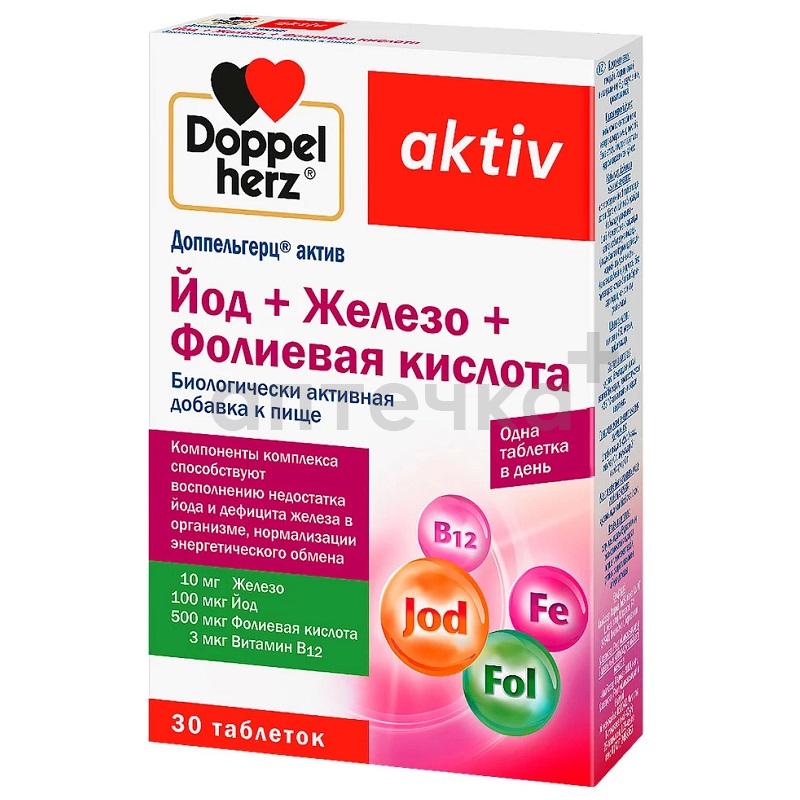 Доппельгерц (БАД) (актив Йод+Железо+Фолиевая кислота табл. 451 мг №30)