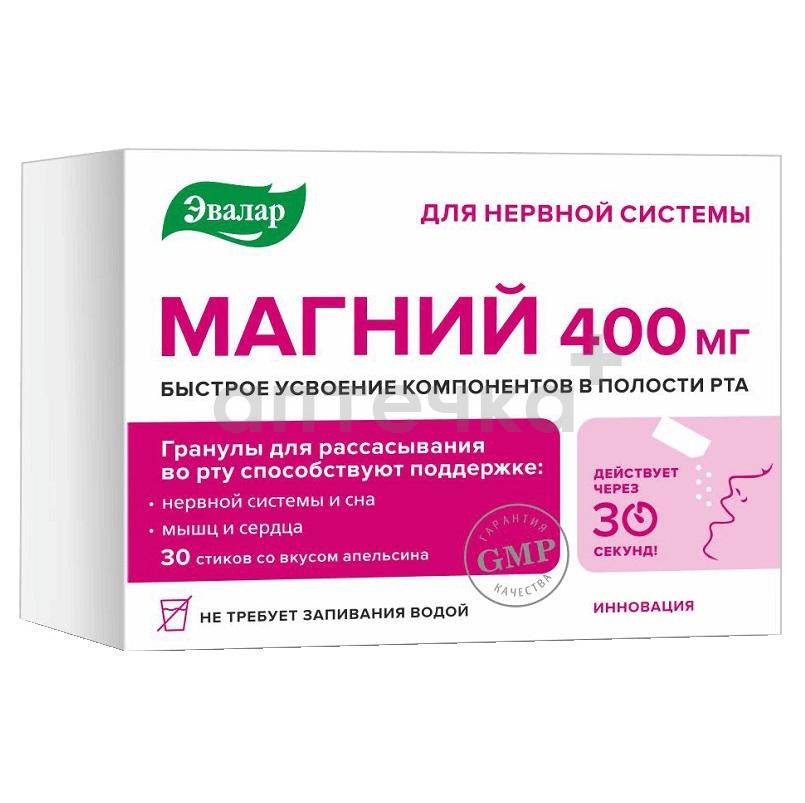 Магний 400 мг (БАД) (гранулы д/рассасывания в стиках 3 г №30)