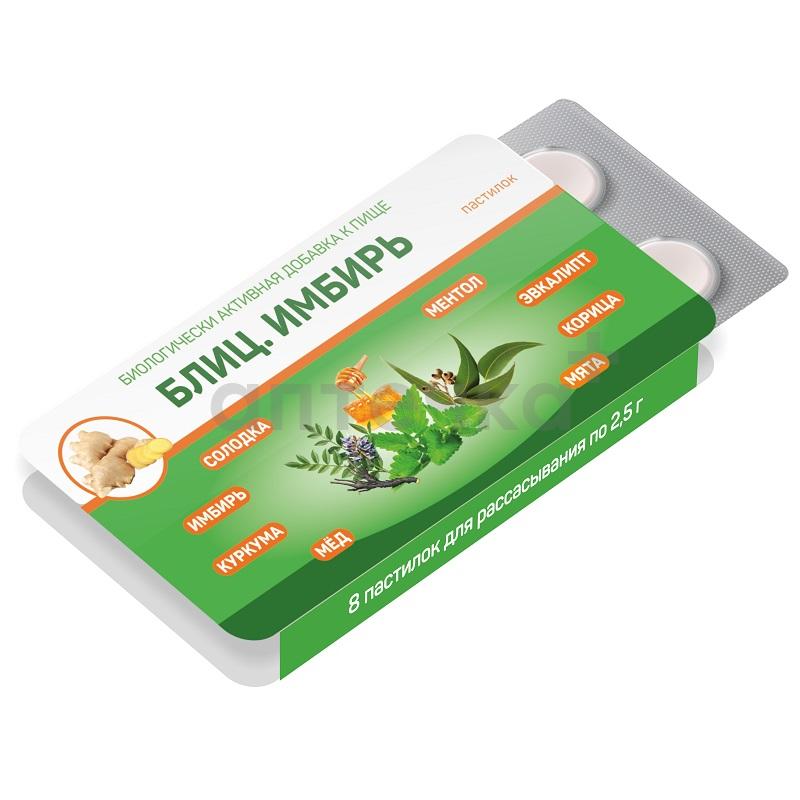 Блиц. Имбирь (БАД) (пастилки для рассасывания 2,5 г №8)