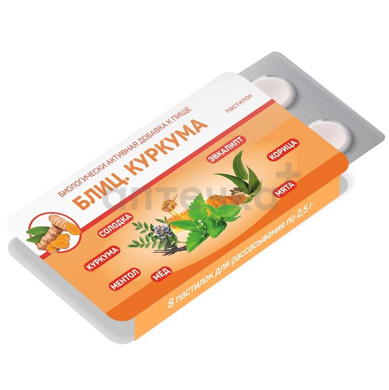 Блиц. Куркума (БАД) (пастилки для рассасывания 2,5 г №8)