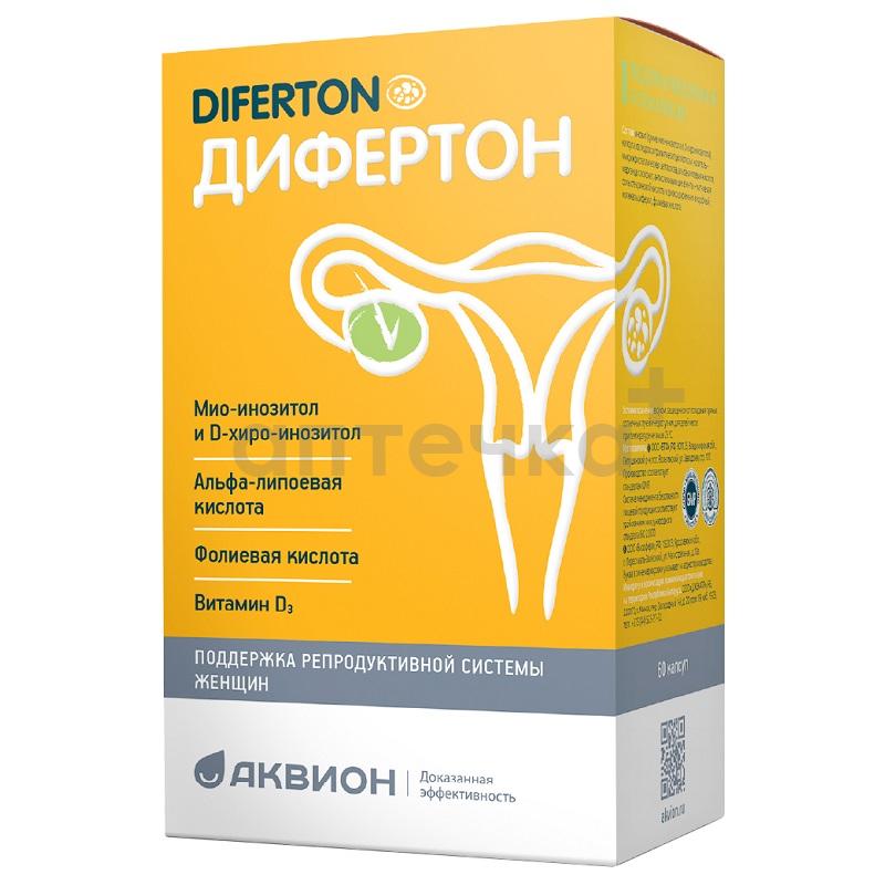 Дифертон рекомендуется в качестве биологически активной добавки к пище, дополнительного источника инозита (В8), альфа - липоевой кислоты, фолиевой кислоты, витамина D3 и марганца, для поддержания функции репродуктивной системы у женщин с метаболическим синдромом. Содержит компоненты, которые помогают нормализовать как работу яичников, так и обмен веществ, в частности, усвоение глюкозы. Поэтому прием Дифертона будет полезен: женщинам с синдромом поликистозных яичников, при нарушенной чувствительности к инсулину (метаболическом синдроме).