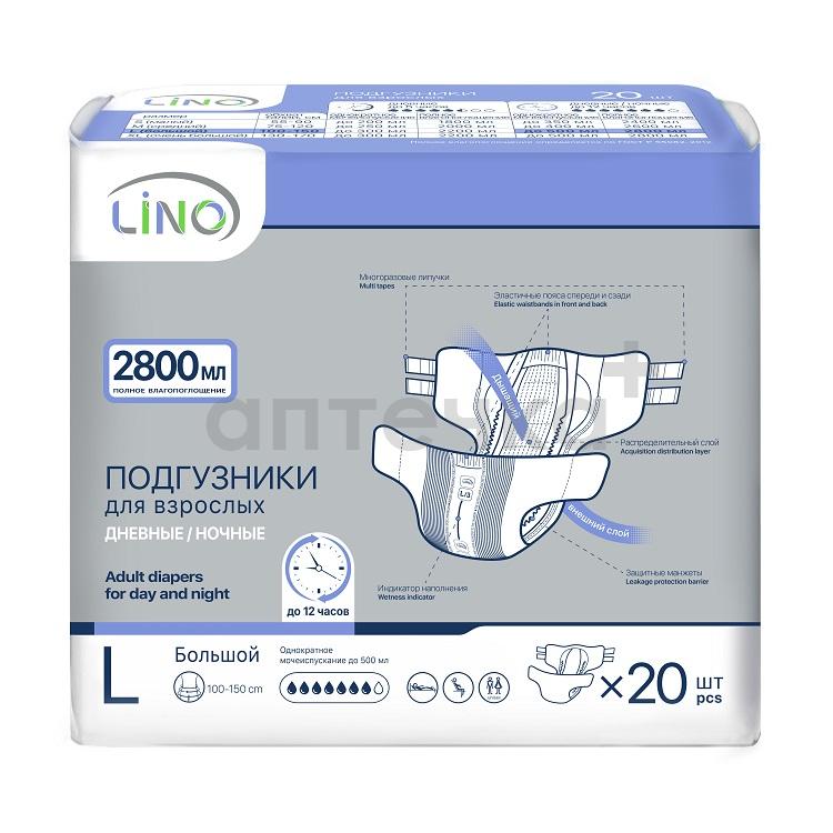 LINO Подгузники для взрослых Large №20, полная влаговпитываемость 2800 мл (день+ночь)