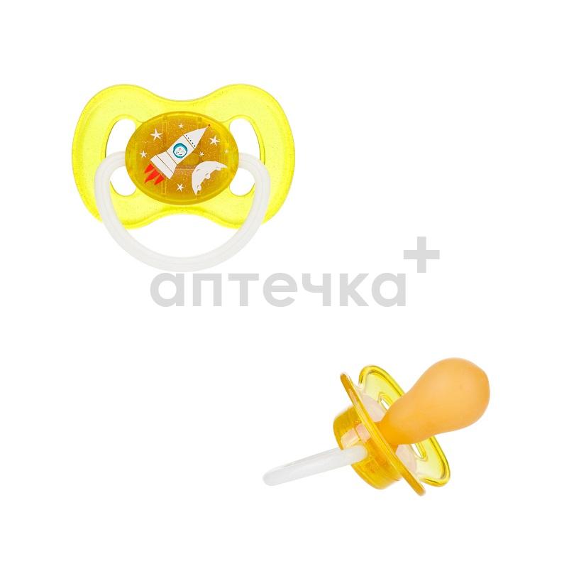 Пустышка изготовлена из резины высочайшего качества, имеет сосок вишневой формы. Специальная вентилируемая накладка предотвращает натирание вокруг нежного детского рта. Имеет светящуюся в темноте ручку, которая облегчает поиск пустышки. Не содержит бисфенола А.