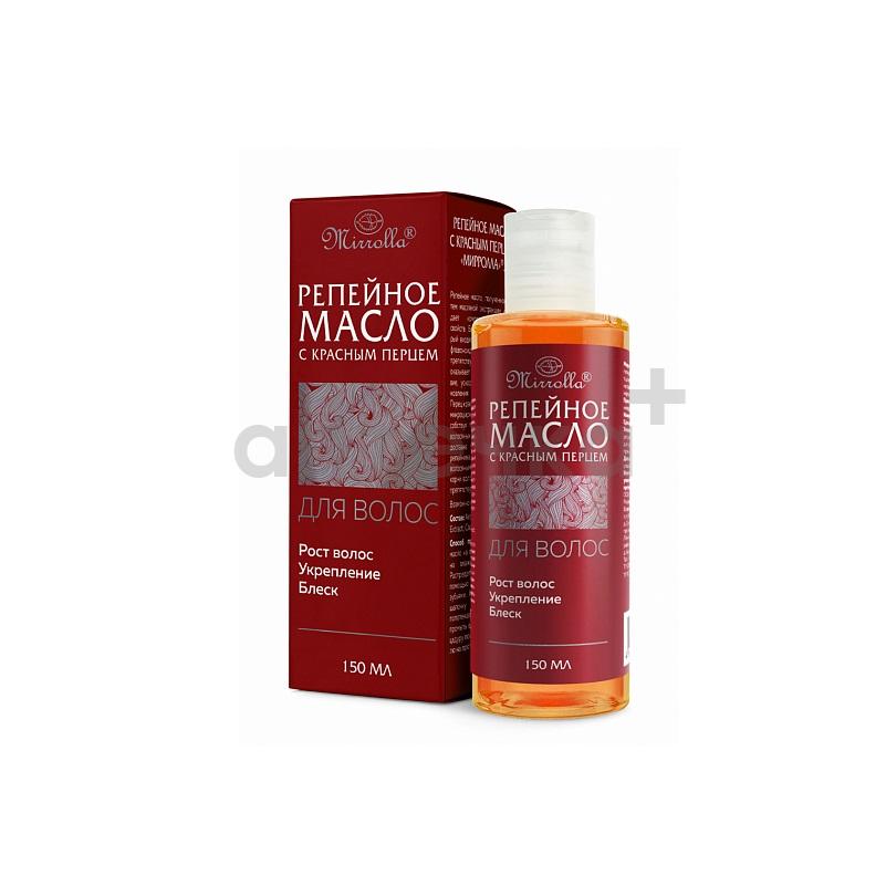 Репейное масло, полученное путем масляной экстракции, обладает комплексом целебных свойств. Богатый состав, в который входят витамины, минералы, флавоноиды и полисахариды препятствует ломкости волос, оказывает увлажняющее действие, ускоряет процессы восстановления поврежденных волос. Перец красный (жгучий) усиливает микроциркуляцию, способствуя пробуждению «спящих» волосяных фолликул, быстрой доставке полезных компонентов репейника непосредственно к волосяным луковицам. Укрепляет корни волос, стимулирует их рост.