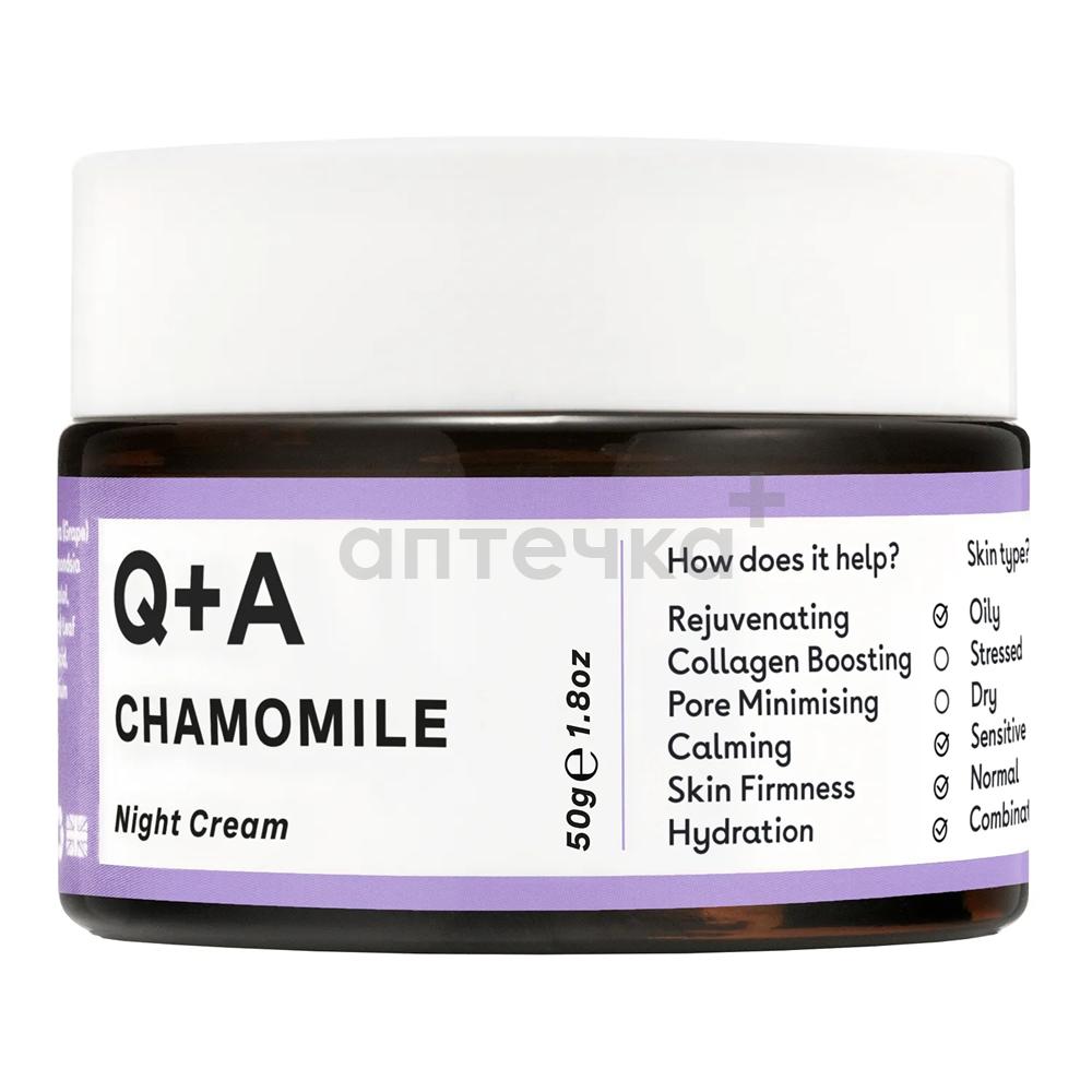 Ночной крем для лица с экстрактом ромашки Q+A Chamomile успокаивает и восстанавливает кожу, пока вы спите. Формула крема содержит активные компоненты, направленные на увлажнение, выравнивание тона и укрепление барьерной функции кожи.