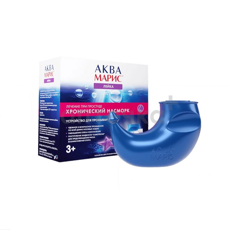 Устройство Аква Марис® Система - это комплект, состоящий из лейки объемом 330 мл и 30 пакетиков с солью Адриатического моря для приготовления раствора, богатого микроэлементами. При ежедневном проведении процедур упаковки хватит на месяц использования. Количество морской соли в пакетиках точно рассчитано под объем лейки для получения изотонического раствора. 1 пакет-саше содержит 2,97 г морской соли. Система позволяет удобно и безопасно промывать нос по всей длине носовых ходов. Жидкость для промывания подается в полость носа «самотеком», т.е. без дополнительного давления, что позволяет избежать такого осложнения, как воспаление среднего уха (отит). Процедура проста и безопасна даже для детей, беременных и кормящих женщин.