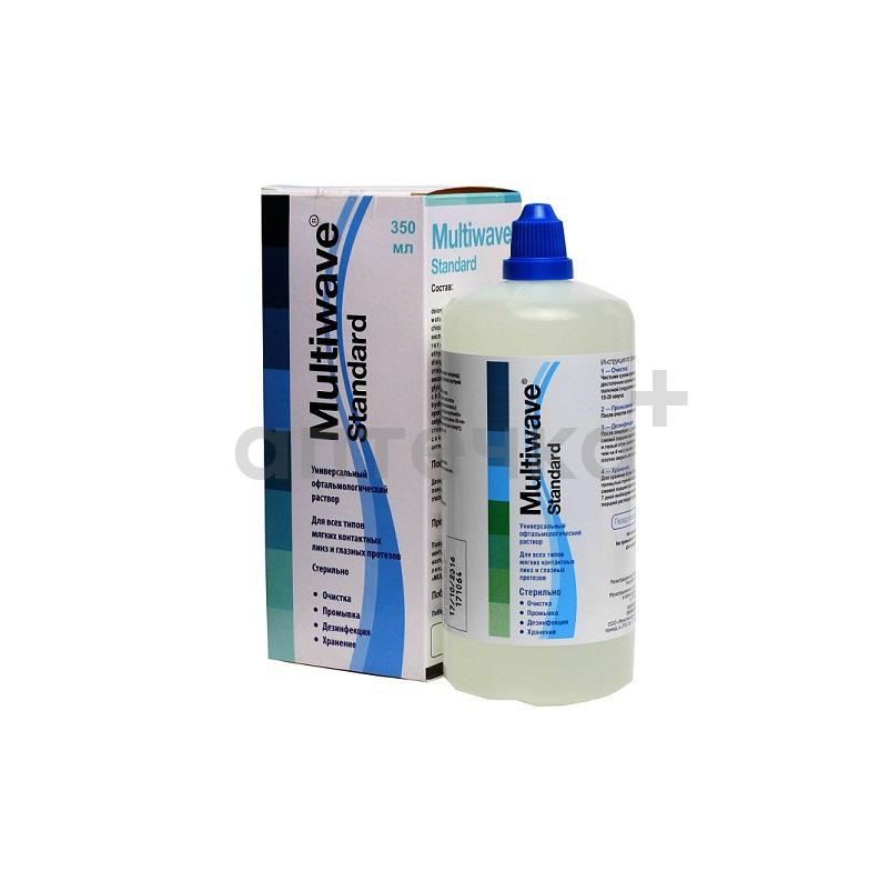 Раствор «Multiwave®-Standard» представляет собой изотонический раствор хлорида натрия в боратном растворе с добавлением смеси поверхностно-активных, неорганических, органических веществ, предназначен для хранения, очистки и дезинфекции всех типов контактных линз. Природные вещества, которые содержатся в составе раствора, аналогичны лизоциму глаза и проявляют антимикробные свойства.