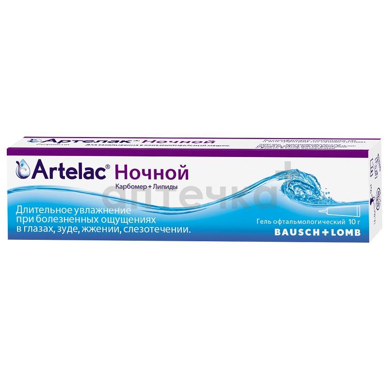 Артелак® Ночной рекомендуется для уменьшения выраженности и облегчения симптомов сухости глаз (таких как болезненные ощущения в глазах, жжение, усталость, «песок в глазах», затуманивание зрения, слезотечение), связанных с хроническим дефицитом слезы. Гель оказывает успокаивающее и смягчающее действие на глаз, и одновременно препятствует испарению влаги, способствуя длительному облегчению симптомов у лиц с подозрением на синдром сухого глаза, связанный с повышенным испарением, а также для людей, которым нужна сверхсильная защита.