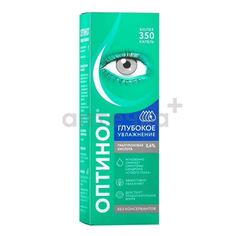Благодаря специально разработанному механизму флакона, раствор остается стерильным в течение 180 дней (6 месяцев) после первого применения, при этом не содержит консервантов. Мультидозатор флакона обеспечивает точность дозирования и удобство применения «Оптинол®» Глубокое увлажнение. Флакон содержит 350 капель.